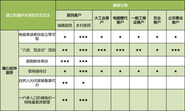 暖心延伸服务则通过电能表误差校验立等可取、“六进、双走访”活动、弱势群体帮扶、自然人光伏报装备案代办等方式实现暖心服务。