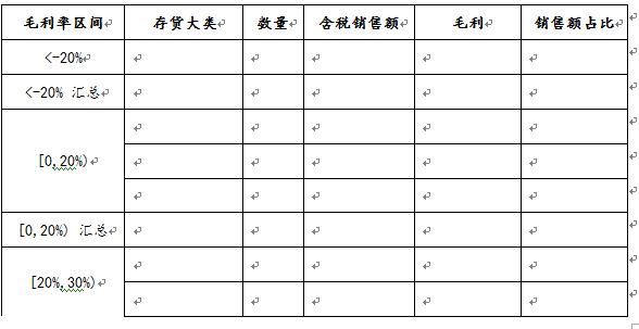 如表3-4所示,此表可细分出各毛利区域内,各大类中具体有多少数量的产品,对处于低毛利率区间的产品要重点分析,考虑定价的合理性。对处于高毛利区域的产品,可结合客户需求表分析,考虑以价换量的可行性。