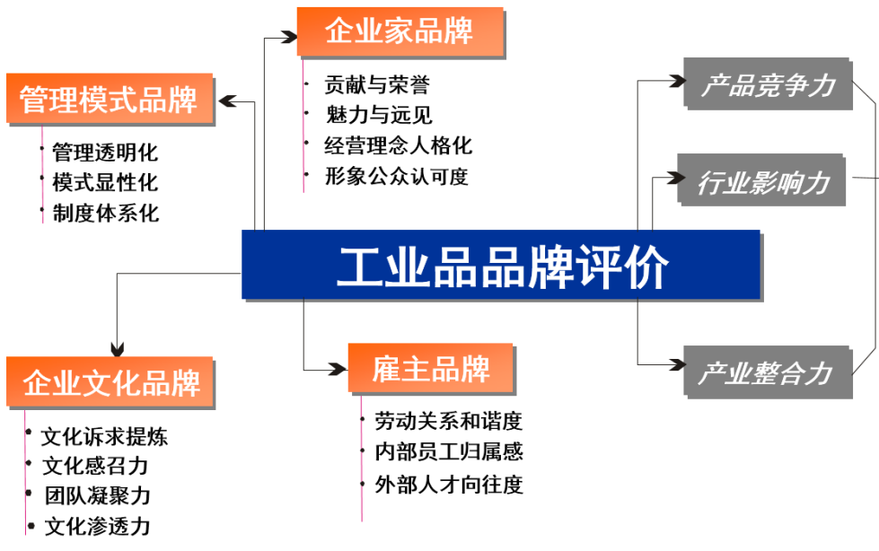 工业品品牌,可以通过“四个品三个力”进行综合评价。“四个品”指的是:企业家品牌、企业文化品牌、管理模式品牌、雇主品牌;“三个力”指的是:产品竞争力、行业影响力、产业整合力。