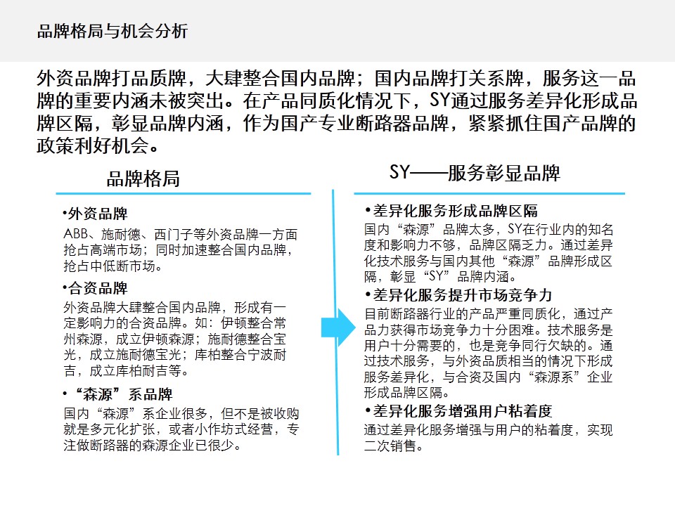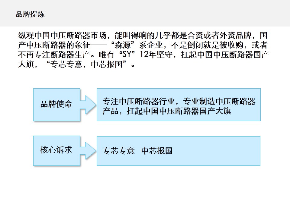 SY公司是专业生产中压真空断路器的高新技术企业,“SY”为省著名商标。企业在行业内树立了良好的企业形象和信誉,是国内中压断路器企业中的佼佼者。但是如何将在财力资源、固定资产、技术研发能力、生产能力、服务能力等方面综合形成的比较优势,转为品牌优势,一直困扰着SY公司的经营团队。