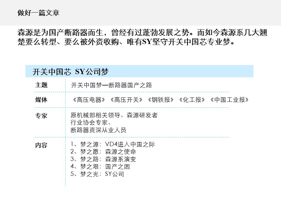 与此同时,其他几家购买“森源”技术的国内企业也发展迅猛。随着国内品牌的逐步崛起,外资品牌开始了其惯用的伎俩——资本手段。SY也不例外地收到了外资品牌抛出的橄榄枝,在其他几家企业陆续被收购之后,SY也有过动心的念头。但回想购买“森源”技术图纸的初衷和“开关中国芯”的雄心壮志,以及在国产断路器征程中的心酸与欣喜,SY更加坚定了“国产品牌”之梦。