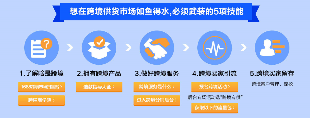 假如自己入驻了跨境专供,还有很多不了解的内容,可以在1688的圈子中找“跨境专供官方圈”,那里面有很多你想要的干货(包括装修、付款、排名算法等)。