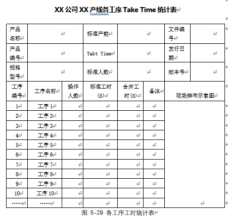 在生产性管控时,可以建立如图5-36所示的生产性作业标准书,每日根据标准书进行各岗位管控,定期对数据进行统计、分析,根据分析结果,再制定相应的改善措施进行改善。