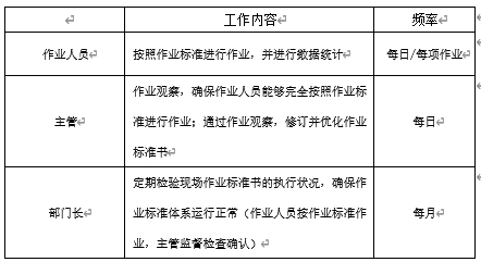 产品加工点的管理要结合标准作业进行。在制定作业指导书时,要对各加工点及质量管控点进行严格要求;作业人员在作业时,要按照作业标准书中的内容进行严格执行。
