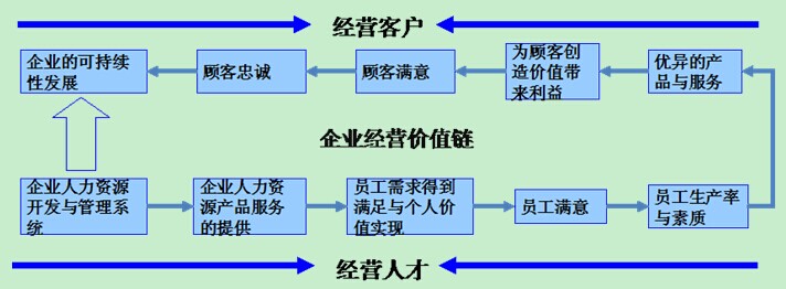 企业生存和发展的核心命题是可持续发展,可持续发展的现实依据来自于不断增长的财务收益,来自于客户的忠诚与持续购买。客户是为价值而付费,所以客户的忠诚与持续购买是来自于企业为客户所创造的价值,而这种价值必须由核心能力来支撑。人力资源的管理与开发作为核心能力的重要根基之一,就与企业的可持续发展之间建立了紧密的联系,所以有的学者提出经营企业无非经营两点:经营客户与经营员工。如图5-1所示。