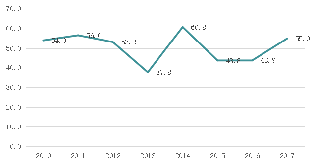 图17-11 2010-2017年Y市人均生活用水量(吨/人)