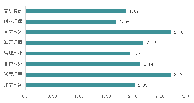图17-13 中国部分水务上市公司供水价格(元/吨)