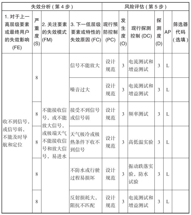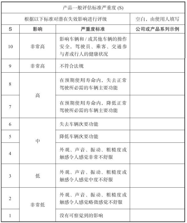 不同企业评分的依据可灵活处理,可把车辆改为公司的成品,比如企业是做导航仪的,如果不能定位或不能导航就是主要功能,严重度就是7~8分或以上。在写文件时,最后一列要写清楚,什么情况下打多少分。
