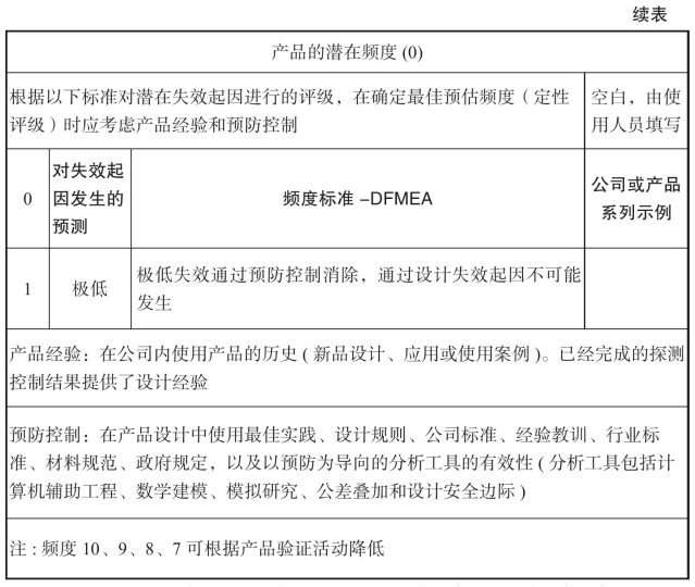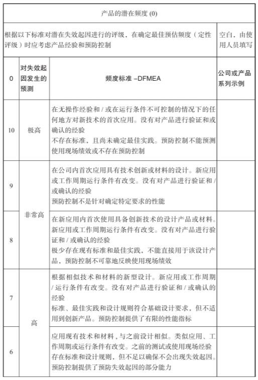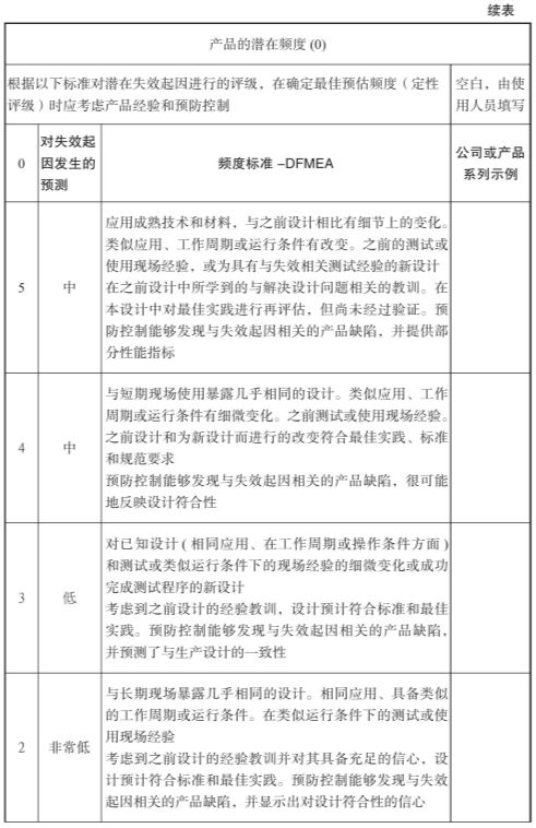 2分——与长期现场暴露几乎相同的设计,预期寿命发生失效概率低。预防控制能够发现与失效起因相关的产品缺陷,并显示出对设计符合性的信心。