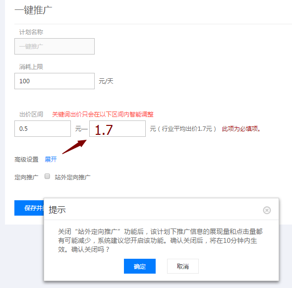 不熟悉的人或者不会操作的人建议不要开启,为什么呢?因为开启了站外推广,流量有了,但是客户不精准会拉低转化率,所以建议前期不开启。