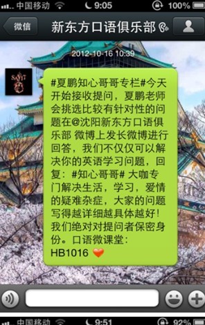 心理测试就不用说了,这是大家最喜欢的环节之一了。我们会定期推出不同的栏目增强互动性,例如:知心哥哥专栏,贴心地解决大家在生活中的困惑,或者微信语音模仿大赛(鼓励大家模仿标准英文)。
