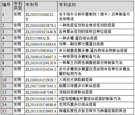 截至2016年末,智飞生物已拥有发明专利15项,如表5-8所示。