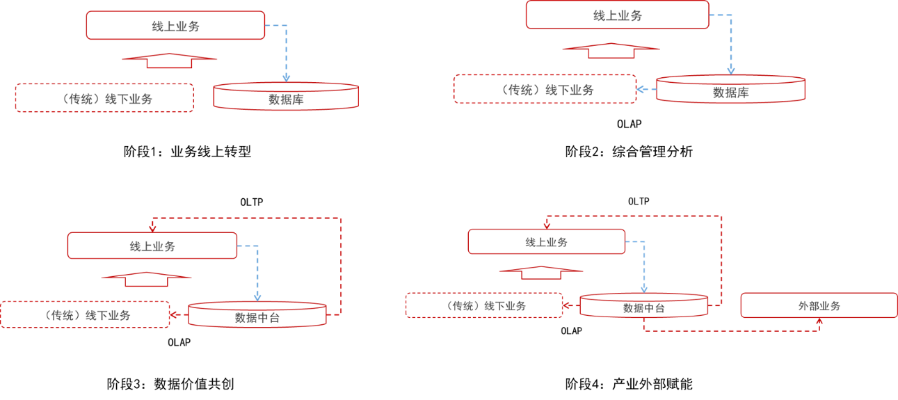 此外,通过把线下业务“搬到”线上来处理,更多的业务活动会产生数据痕迹,而这个过程本身也加速了的企业数据资源的积累。