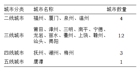 根据新一线城市研究所最新的城市分类,海峡西岸城市群20个城市共有二线城市4个,三线城市12个、四线城市3个,五线城市1个。