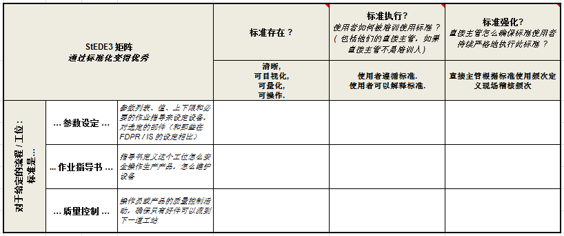 第三步,Enfored 标准参数的强化检查。中小企业总在抱怨标准无法“落地”,不能被作业员落实与执行。管理层都认为有了标准及培训,员工就会按标准执行。但实际情况与我们想象的完全不一样。事实证明,中小企业较多的员工为了能争取多一点的休息时间,就会想出很多办法应对管理者的要求。例如:参数每隔两个小时需要进行监视与测量,有的作业员直接抄上一次的参数,并对其做轻微调整与修改。如模具温度两小时前测试记录为80度,他将修改成81度。所以,在执行的最后一步增加强化中,强化主要由作业员的直接上司来完成,通过作业员对实际参数点检并再次确认其参数点检的有效性。