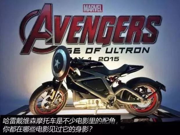 由于哈雷·戴维森摩托车独特的成长背景,许多电影制片公司都会把哈雷作为工具首选,这让公司一方面节省了广告支出,也对消费者形成潜移默化的影响:哈雷·戴维森就是明星产品。多年来,哈雷·戴维森产品出演的影片数不胜数,图为《复仇者联盟 2》中的哈雷摩托车