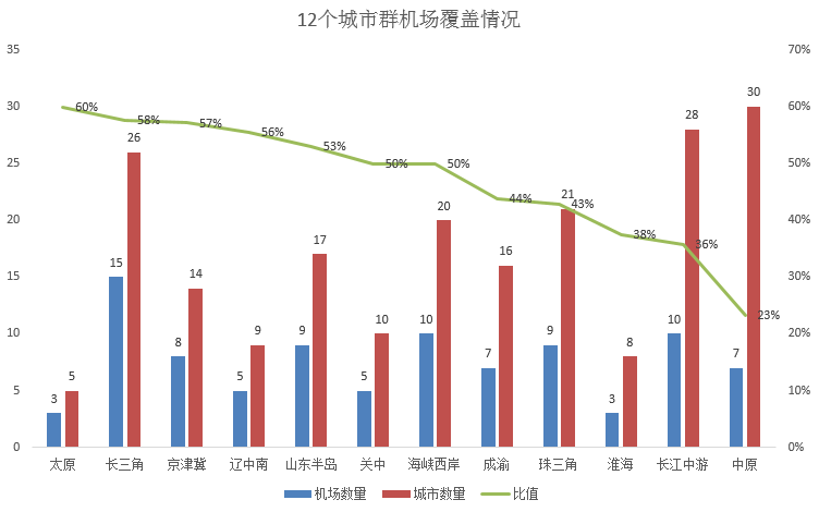 我们站在城市群的视角,对城市群城市拥有机场的覆盖率情况进行了整理分析: