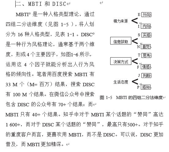 另外,MBTI 有不少种传播的方式,可以通过各种脸谱化的方式普及知识,而且由于 MBTI 和九型人格 ① 、DISC 、4D② 等都有较强的相关性,可以借势一起宣传。同时,MBTI 的研究也是比较丰富的。
