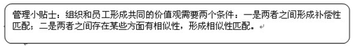 (2)员工个人和组织之间存在某些相似的基本特征,形成相似性匹配。社会中存在着各种各样的价值观和个性特征,企业在选人的时候首先要考虑应聘者的个性特征与企业的匹配程度。与此同时,不同员工的生活观必定会存在差异,但至少要保持企业与员工“核心价值观”的一致,在管理工作中通过正向引导员工的核心价值观向积极、健康的方向转变,逐步改善员工的心态,提高员工的工作积极性。