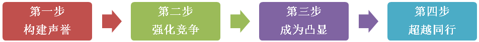 阶段一:初建声誉 | 阶段二:强化竞争 | 阶段三:成为凸显 | 阶段四:超越同行 | |