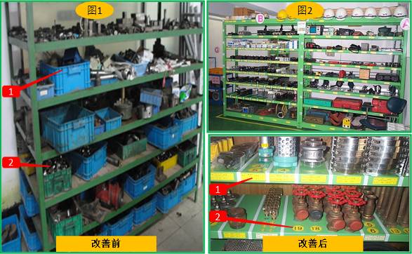 箭头1:所有备件有明确的摆放位置,拿取快捷,提高人员能动效率。如果所有部门所有物件都在这摆放,人均1天节约1分钟,换算下来能折算好几个工时,节约了成本。我曾给一个企业做5S管理咨询服务,把一个岗位按工作流程固定所有物件的摆放位置,以前是2个人操作,后来1个人操作即可,节约了人力。