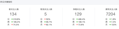 这块主要分4个:新关注人数 、取消关注人数、净增关注人数、累积关注人数。