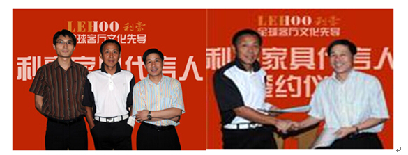 项目组为了更好地打造知名度,建议利豪家具采用品牌代言人策略。一方面,可以极大地提升品牌认知度;另一方面,可使品牌内涵更清晰、更鲜明地传递给大众。为了选择代言人,大家已经讨论了5天了,最终,小何的建议得到了认可——选择陈道明作为品牌代言人,传递别致的品牌内涵。2008年8月11日,利豪家具在北京昆仑饭店顶峰俱乐部举行了盛大的“品牌代言签约仪式”(如图4-8所示)!