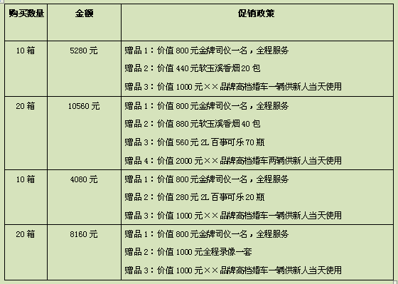 表2-22 某名酒系列婚宴捆绑销售政策
