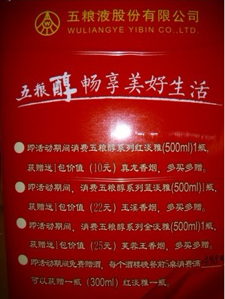买赠促销是白酒促销最常见的一种形式,无论是新产品上市还是老产品刺激提升,均是比较有效的方式。主要以搭赠礼品、搭赠小酒、搭赠香烟、买一赠一等方式刺激消费者。