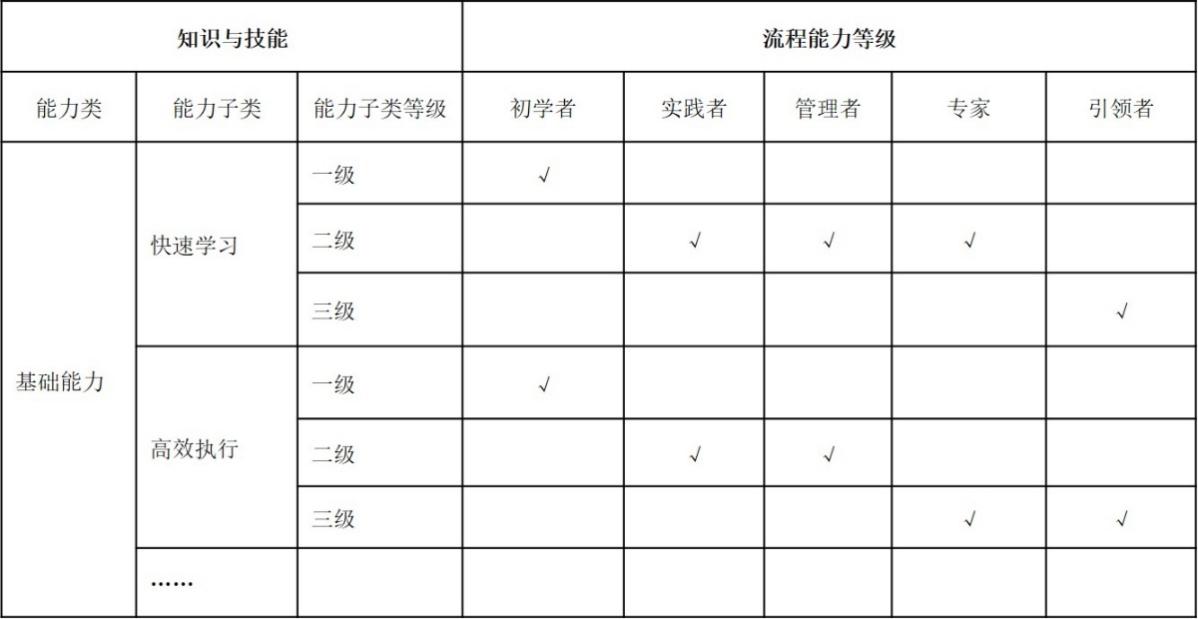 不同流程能力等级如何对应能力类、能力子类的等级,没有绝对的标准,需要根据公司的实际情况进行匹配,同时这个也不是一成不变的,业务环境发生变化可以随之进行适配调整。