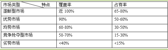 表7-2 以覆盖率和占有率为指标考察各个市场