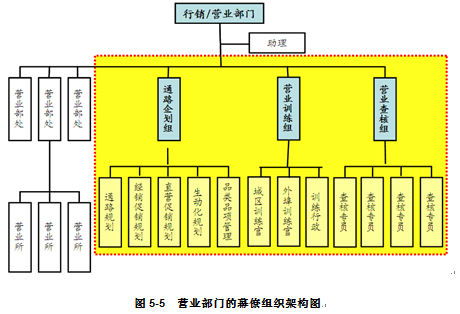 为充分发挥营销或营业部门的功能,达成公司分配给该组织的任务,营销或营业部门除了经营单位外,还要有通路企划组、训练组与查核组等幕僚单位的协助。