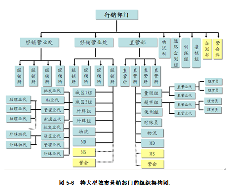 营销部门一般由915个营业所组成,有独立运作的企划部,也有级别较高的后勤单位,具体如图5-6所示。