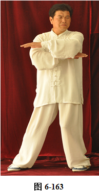 注意:手势和脚步要随腰转动,要“上下相随,内外相合”。