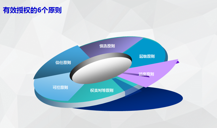 管理小贴士:授权是组织运作的关键,管理者将完成某项工作所需要的权力授予下属,即主管将任用人员、使用资金、安排任务,以及与客户交涉、协调的决策权移交给下属,只授予权力,不可托付完成该项工作的必要责任,这是授权的绝对原则性。组织中不同层级有各自的职权,权限则会在不同的层级之间流动,因而产生授权的问题。授权是管理者的重要任务之一。有效的授权是一项重要的管理技巧。