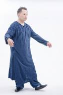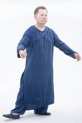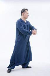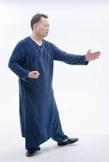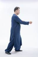 搬、拦、捶、有什么腿法呢?当然有。这个式子里的腿法一样隐含了搬、跟、拦的腿法。当右脚套步由内向外转半圈时就是搬,左脚由外向内弧线拉回体前就是拦。但不管是手还是脚,一律是身打,而不是手打或腿打。这点我反复强调,大家要在练习时细细揣摩,慢慢就会找到身打跟劲法的感觉。