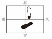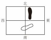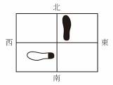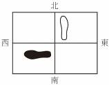 3.全身不动,右脚套步由内向外绕半圈,即右脚根先绕圆靠近左脚,再绕往外面,脚尖朝正北。脚跟点地放在左脚尖与左脚跟之间的范围内,与肩同宽。