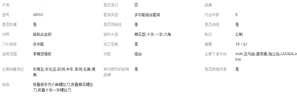 监控对手,指的是跟自己竞争有关系的同行。一般指所有同类目下,属性、价格区间差不多的同行。比如我是做折叠六角螺丝刀的,可以看到属性基本一样,类似图2-3。