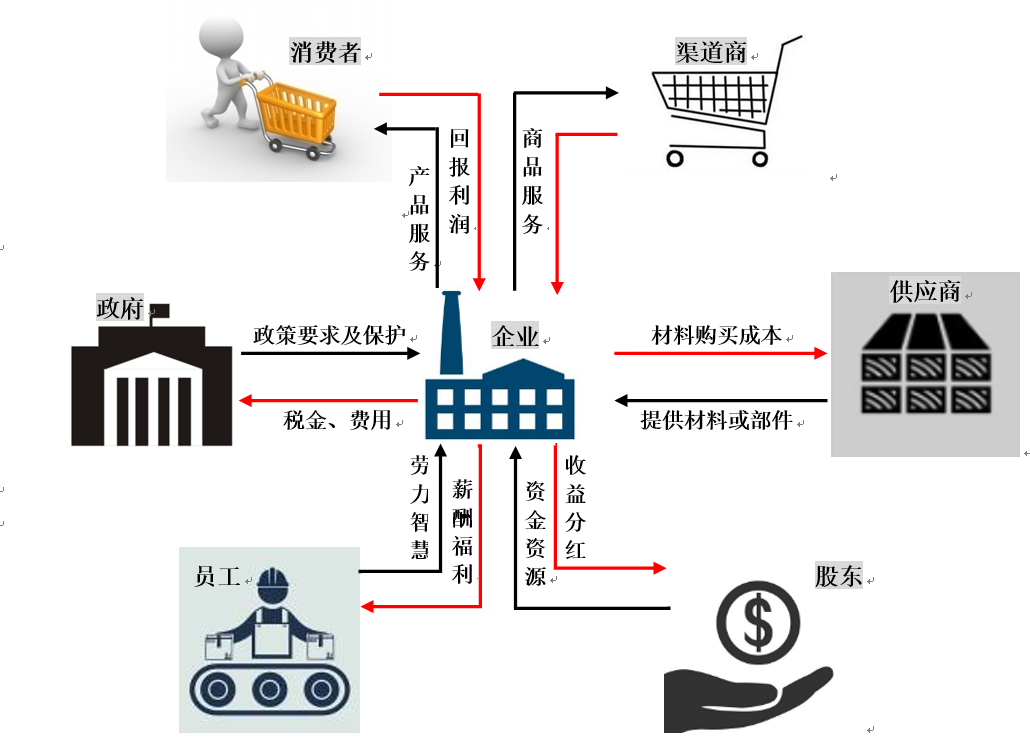 产品,是企业链接内、外部价值的桥梁,因此,设计开发必须考虑并平衡相关方的利益(诉求)。与产品相关的利益方参见图2.2归纳所示。
