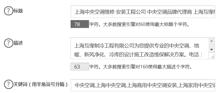 对应在搜索结果里展示的标题和描述,在好的CMS系统后台里也一定会有相应的编辑头部的地方。图4-6就是这家公司网站的wordpress系统(一款在世界范围内使用最广的博客网站后台,也常常作为企业网站的建站系统)里,修改区域。