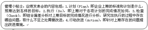 企业在PDCA管控循环中,不可或缺的一项工作便是召开企业的业绩发表会,在会上通过分析工作完成情况的偏差和成因,发表改进措施和改进行为的落实情况,通过质询和修正,不断提高企业经营水平。