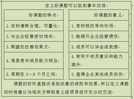 (3)课题的大小和课题改善的时间长度要适中。