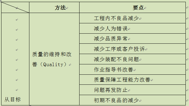 正因为这样一些大的课题是跨部门的,所以用指标分解的形式来界定不同部门的改善效果就显得十分重要。