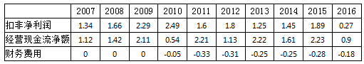 再看扣非净利润、经营性现金流净额、财务费用。财务费用变动不大,但扣非净利润和经营性现金流净额都剧烈下跌。由此可知,智飞生物2016年净收益剧烈下跌的原因,是扣非净利润和经营性现金流净额的双双下跌。