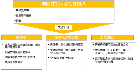 新开业商圈开发相对较容易,在餐饮门店处于装修阶段,酒水供应商未固化前,快速接洽餐饮负责人,为餐饮门店提供开店服务支持,开发相对较容易。对于一些成熟的商圈,供应商较为成熟,开发起来相对较难,需要在商圈送货时间段寻找为这些餐饮门店提供产品服务的餐饮批发商,并与之合作,才能创造服务的可能性。