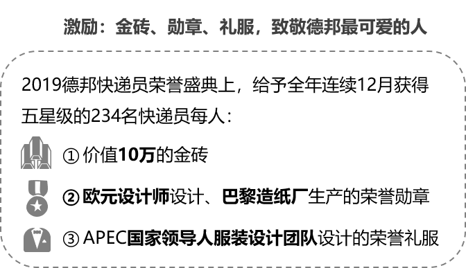 德邦快递成立于1996年,致力成为以客户为中心,覆盖快递、快运、整车、仓储与供应链、跨境等多元业务的综合性物流供应商。 目前,德邦正从国际快递、跨境电商、国际货代三大方向切入港澳台及国际市场,已开通港澳台地区,以及美国、欧洲、日韩、东南亚、非洲等国家线路,全球员工人数超过14万名。如图6-33所示。 图6-33 德邦物流的业务布局 2018年1月16日,德邦快递在上海证券交易所挂牌上市,正式登陆A股资本市场,简称“德邦股份”,股票代码603056。同年7月2日,公司品牌名称正式由“德邦物流”更名为“德邦快递”。 截至2019年2月,全国转运中心总面积168万余平方米,覆盖全国96%的区县、94%的乡镇,网络覆盖率行业领先,为客户提供标准定价、一单到底的快递服务。目前营收达到250亿左右。 德邦的使命:物畅其流,人尽其才。 德邦的核心价值观:以客户为中心、以进取者为本、以团队创高效、坚持自我反思。 德邦的干部管理体系是全面学习华为的典型。 (1)校园招聘 任职要求:从“胸怀大志、一贫如洗”到多元化发展。 基层筛选:从基层收派快件发车开始,前3个月可能会走三分之一,后3个月再走三分之一,并不是所有人都适合德邦,留下来的就提拔。 (2)干部选拔 业务前25%就可以报名参加储备班,进行全方位培养,之后综合打分,前50%可以提拔。 原则:猛将必发于卒伍,宰相必起于州郡——从成功实践中选拔干部。 图6-34 德邦物流延续18年的干部储备制度 (3)干部使用 好干部是折腾出来的——通过轮岗,采用任期制,让干部到艰苦地区历练,“时刻准备着,时刻打包着”。 淘汰体系——流水不腐户枢不蠹,淘汰率≥10%。 干部作风建设:干部成长比较快,但怕经不住诱惑,基于“人品出问题,一切都是多余的”的理念,有明确的作风建设制度和奉化。 (4)干部激励 满足饥饿感,打造利益共同体:工资+奖金(获取分享制)+福利(出国留学、配车等)+长期激励(超额利润分享、股权激励)。 获取分享:只要完成团队利润指标,超出的部门给了国家、给了团队,剩下的就是自己的。 干部的精神奖励:各种奖项(长青奖、业绩标杆奖、天道酬勤奖、众志成城奖)、集体婚礼等——“搞上一个事儿,让他们记住一辈子”,让大家有职业自豪感和荣誉感。