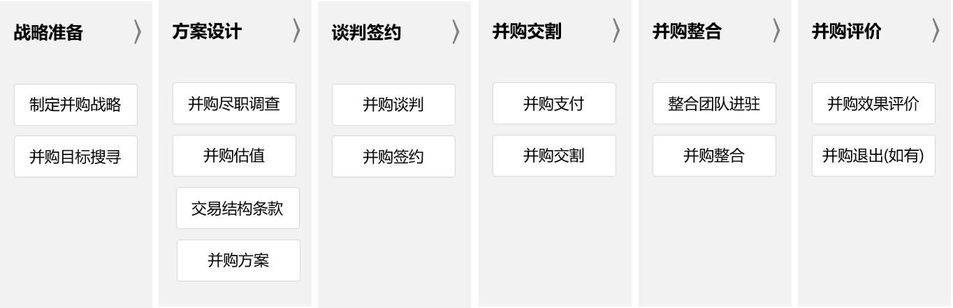 企业并购是一个极其复杂的运作过程,从研究准备到方案设计,再到谈判签约,成交到并购后整合,整个过程都是由一系列活动有机结合而成的。企业并购涉及经济、法律、政策等方面的问题,不同性质企业的并购操作流程也不尽相同21。