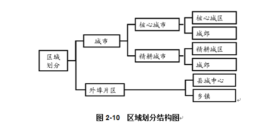 (1)城市区域细分有以下三种情况:城区+城郊、城区+城郊+县城、县城+乡镇,如图2-6、图2-7、图2-8所示。