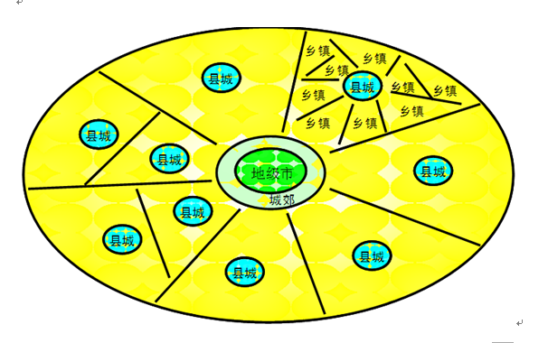 ② 地级市由城区、城郊和几个县城组成,县城又由县城城区与乡镇构成。
