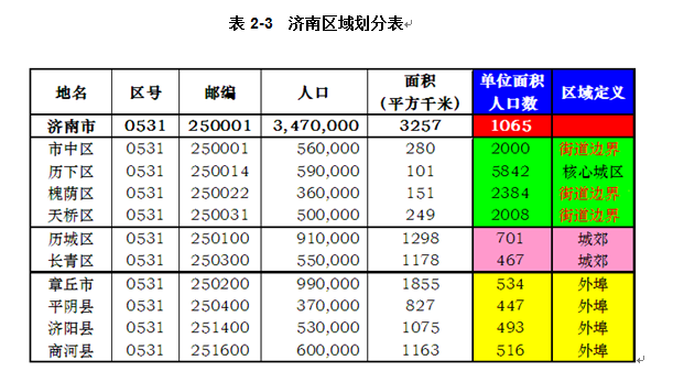 3)章丘市、平阴县、济阳县与商河县等周边的县(县级市)则为外埠区域。